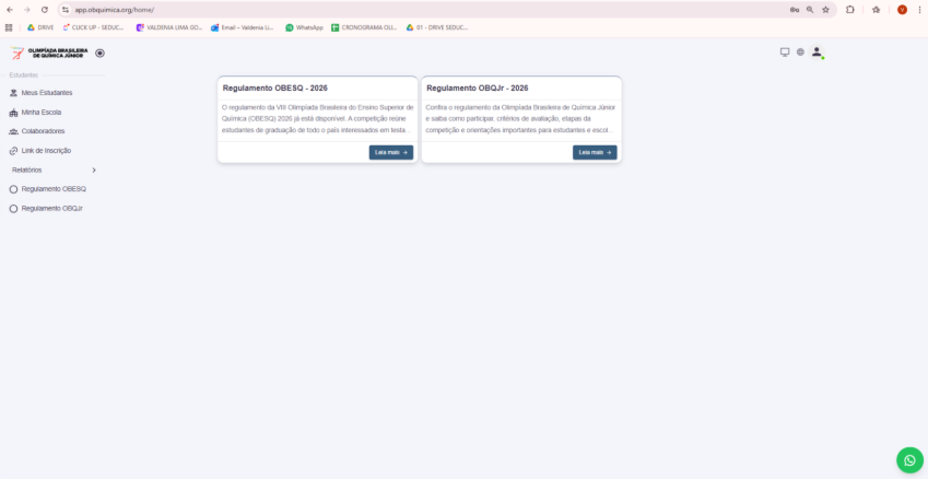 A inscrição na OBQ Jr. é realizada exclusivamente pela plataforma oficial e deve ser feita pelo professor responsável pela escola.